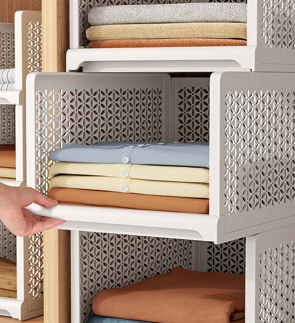 - Stackable Clothes Storage Baskets: These wardrobe storage shelves can be stackable which makes home space organized, maximising the use of vertical space.